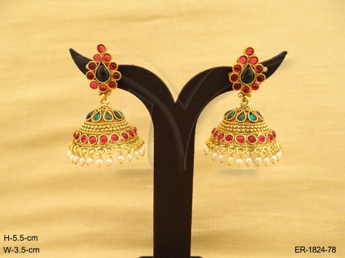 Kemp Stone Jewellery , Long Pan Hold Layered Jhumki Kemp Earrings | Manek Ratna