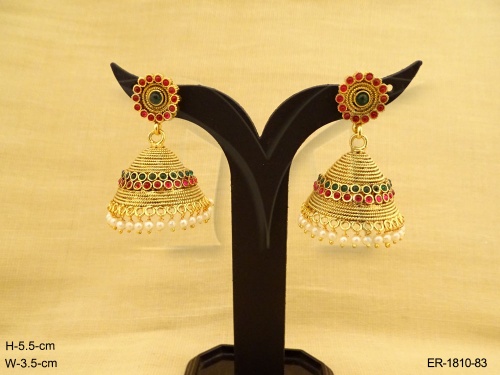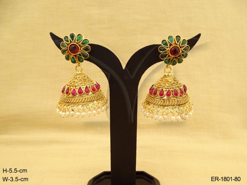 Kemp Stone Jewellery , Flower Hold Jhumki Designed Kemp Earrings | Manek Ratna