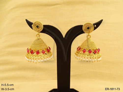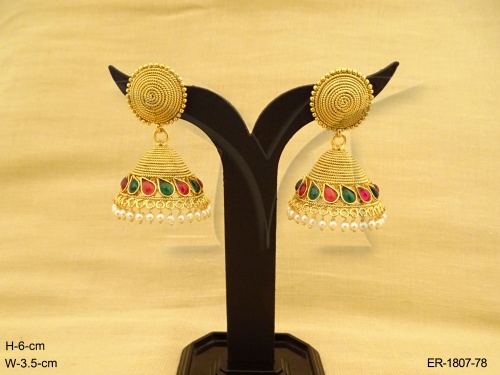Kemp Stone Jewellery , Round Spiral Cap Triangular Kemp Jhumki Earring | Manek Ratna