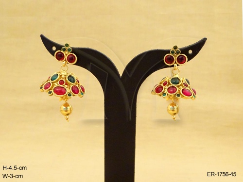 Kemp Stone Jewellery , Round Flower Hold Jhumki Kemp Earrings | Manek Ratna