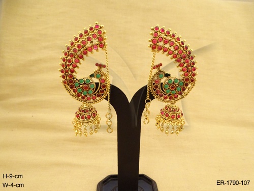 Kemp Stone Jewellery , Peacock In Style Jhumki Kemp Earrings | Manek Ratna