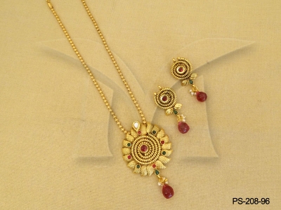 Kemp Stone Jewellery , Spiral Paan Round Base Antique Pendant Set | Manek Ratna