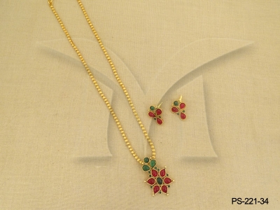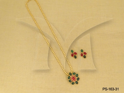 Kemp Stone Jewellery , Delicate Flower Kemp Stoned Pendant Set | Manek Ratna