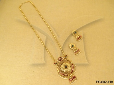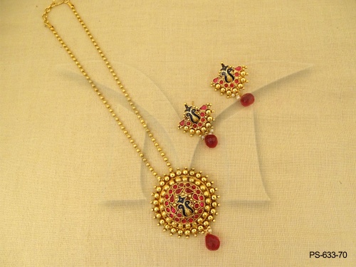 Kemp Stone Jewellery , Dancing Peacock Round Kemp Pendant Set | Manek Ratna