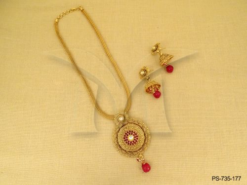 Kemp Stone Jewellery , Round Chakri Bordered Designed Kemp Pendant Set | Manek Ratna