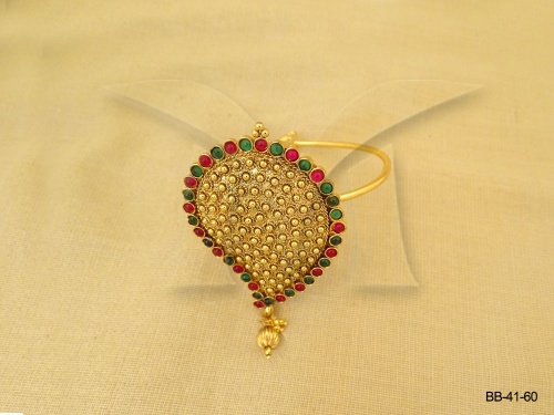 Kemp Stone Jewellery , Kairi Shape Textured Moti Drop Kemp Bajuband | Manek Ratna