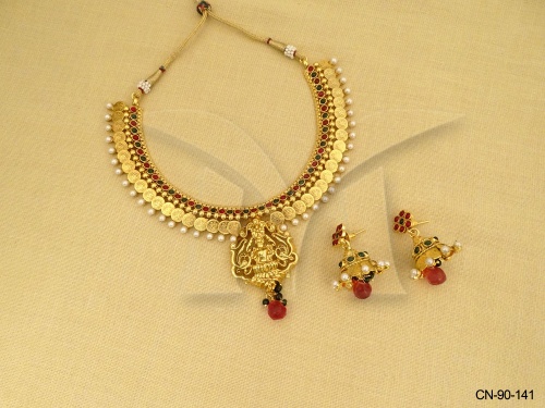 Kemp Stone Jewellery , Dhanalaxmi Based Laxmi Coin Kemp Coin Necklace Set | Manek Ratna