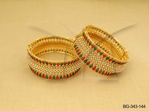 Kemp Stone Jewellery , Paan Bordered Broad Kemp Stone Bangle Jewellery | Manek Ratna