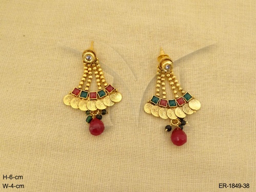Kemp Stone Jewellery , Laxmi Ji Square Pendulam Kemp Temple Coin Earrings | Manek Ratna