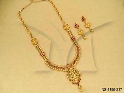 Kemp Stone Jewellery , Laxmi Ji Different Style Temple Kemp Necklace Set | Manek Ratna
