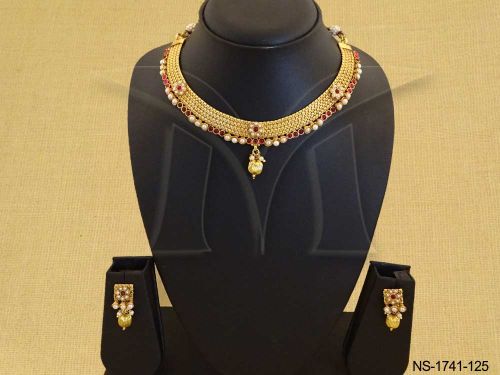 Kemp Stone Jewellery , Simple Saree Wear Designed Traditional Kemp Necklace Set | Manek Ratna