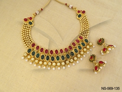 Kemp Stone Jewellery , Small Flower Kemps Oval Ballchain Kemp Necklaces Sets | Manek Ratna