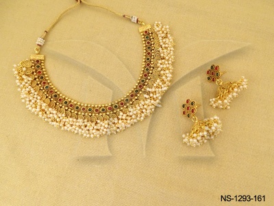 Kemp Stone Jewellery , Spiral Ghungru Style Kemp Necklace Set | Manek Ratna