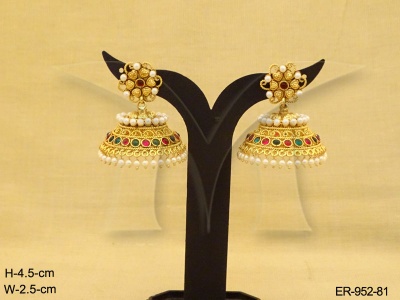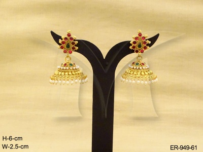 Kemp Stone Earrings , Paan Round Kemp Jhumki Earrings | Manek Ratna
