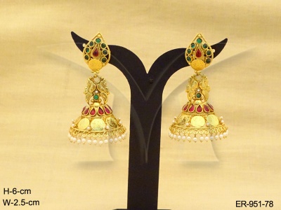 Kemp Stone Earrings , Laksmi Coin Jhumki Kemp Earrings | Manek Ratna