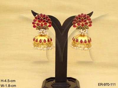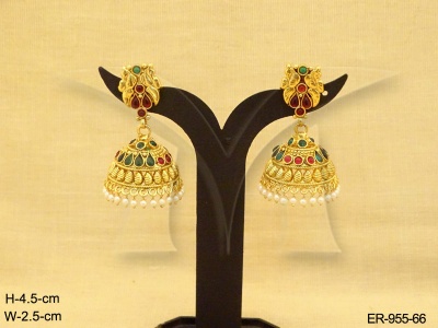 Kemp Stone Earrings , Kemp Ghungru Jhumki Earings | Manek Ratna