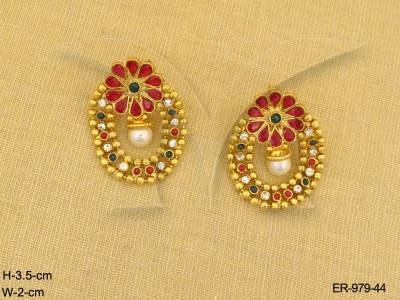 Kemp Stone Earrings , Round Flower Kemp Moti Earrings | Manek Ratna
